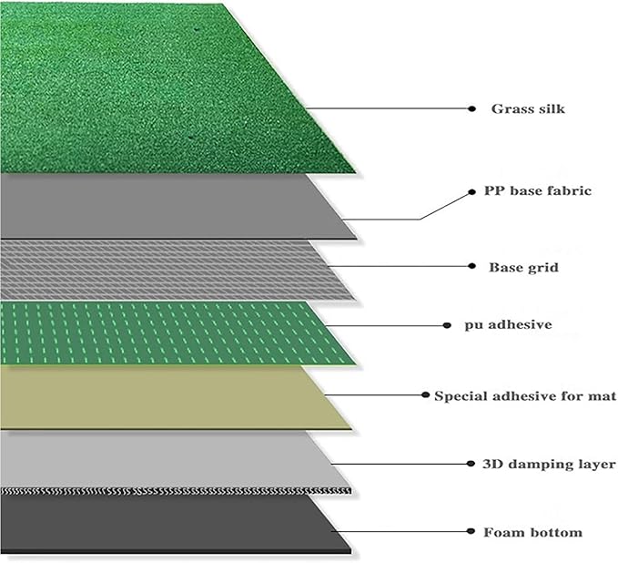 - Crafted from 15mm nylon artificial grass, 10mm buffer layer and 15mm EVA bottom, the mat is durable and long-lasting, ensuring it can withstand repeated use during golf training