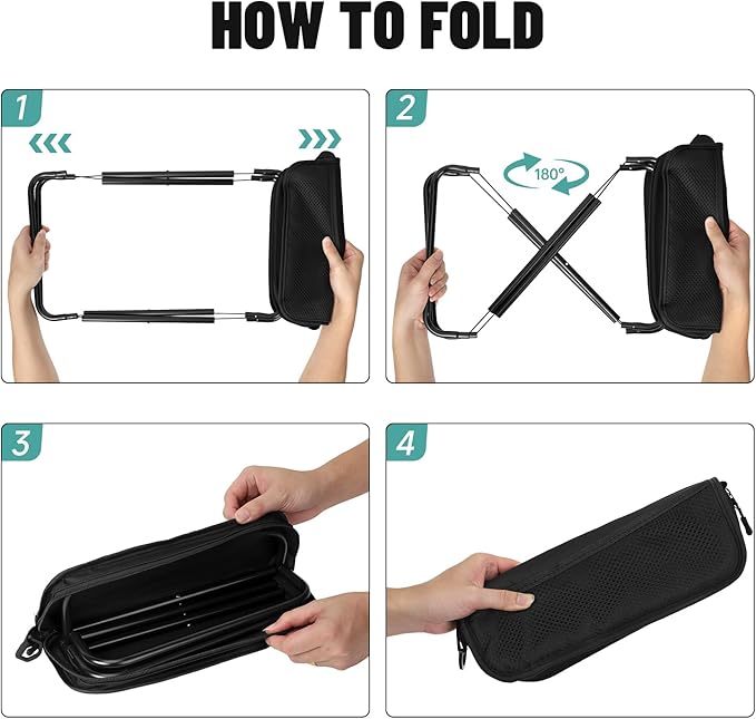 - [Handbag storage design] The portable stool has a unique handbag storage, which is only 12.6*4.7IN after storage. It can be easily put into pockets, backpacks, handbags, etc., and travel light.