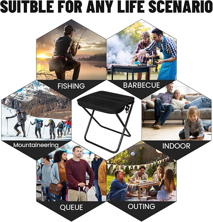 - [Multi-scenario use] Camping chairs are small and can be carried with you. When you need it, you can unfold it and use it. It is very convenient. It is a small folding chair for camping, picnics, barbecues, fishing, strolling, high-speed rail, queuing, and travel.