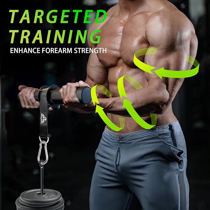 - 🔄 Dynamic Wrist Roller for Forearm Isolation Use for wrist rolls, curls, reverse curls, and isometric holds to directly target the wrist flexors, extensors, and surrounding stabilizer muscles. Whether you want mass, definition, or endurance—this tool delivers.