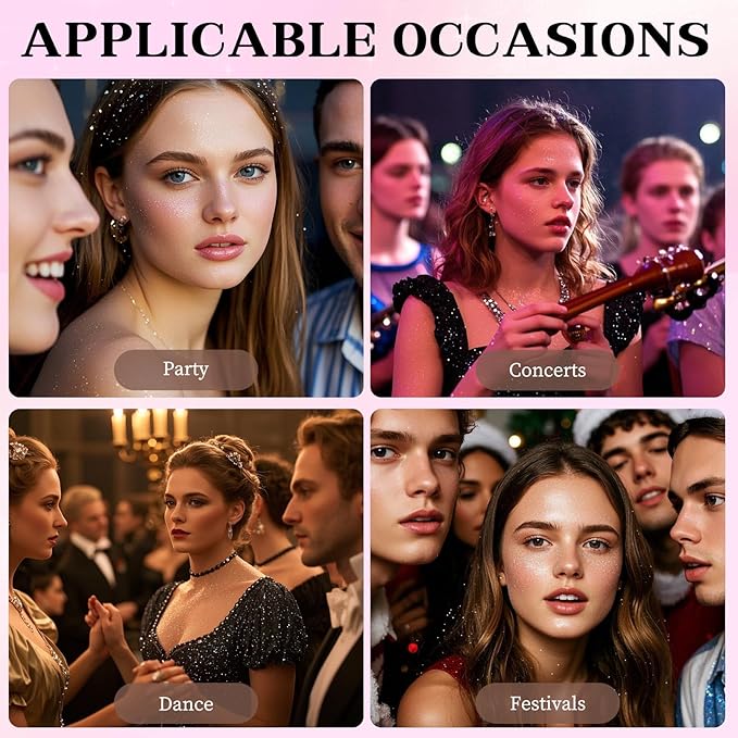 - Multi-Purpose Glitter Spray: Our body glitter spray is made of glitter particles, delivering a charming shimmer effect. You can spray it on your body, hair, face, skin, and even clothes. It will make you the center of attention under the lights at parties or nightclubs