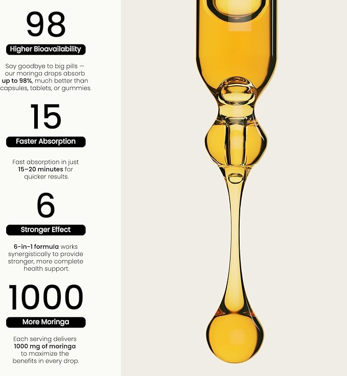 - 【Convenient and Versatile Usage】 Our moringa drops make daily supplementation easy, eliminating the need to swallow large capsules. Simply take 2ml daily for a 30-day supply per bottle. Consume directly or mix into your favorite beverages like water, coffee, tea, or smoothies. The liquid form offers an efficient and convenient absorption alternative to traditional capsules or tablets, making it ideal for men and women seeking optimal wellness.