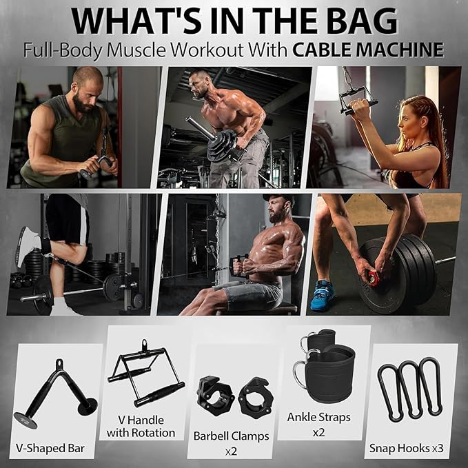 - [Fully equipped & versatile] The HR05 power cage comes with all the attachments you may need more of in your daily training. including 4 free handle attachments, 2 safety spotter pins, dip bars, j hooks, and T-bar row attachment. This provides a wide range of exercises, such as wide & narrow lat pull-downs, T-bar rows, seated cable rows, bench presses, squats, deadlifts, bicep curls, triceps extensions, pull-ups, chin-ups, dips, and more.