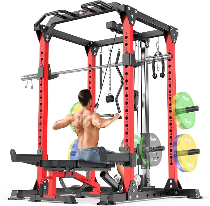 • COMPLETE HOME GYM WORKOUT - Equipped with a multifunctional fitness rack that perfectly combines a weight cage, squat rack and cable crossover machine with useful additional accessories, you can perform a full-body workout at home. The racks include wide/near grip pull-ups, squats, deadlifts, bench presses, squats and push-ups. They are perfect for all your workout and home gym storage needs!