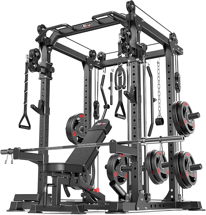 Power Cage,1600lbs Multi-Function Power Rack with Adjustable Cable Crossover System and More Training Attachment, Weight Cage for Home Gym