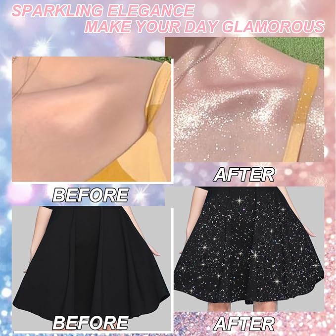 - 【Healthy Ingredients】Made with skin-friendly, non-toxic ingredients, this glitter spray is safe for women and girls. The lightweight, high-shine formula won’t irritate skin or hair. Plus, it’s cruelty-free and eco-conscious, so you can sparkle guilt-free!