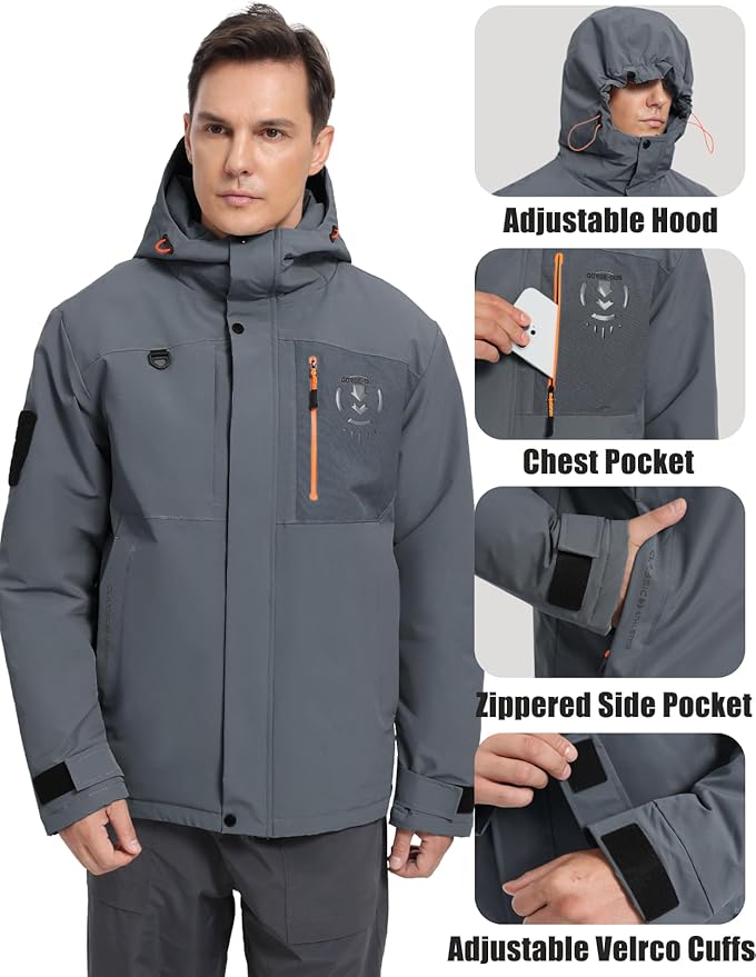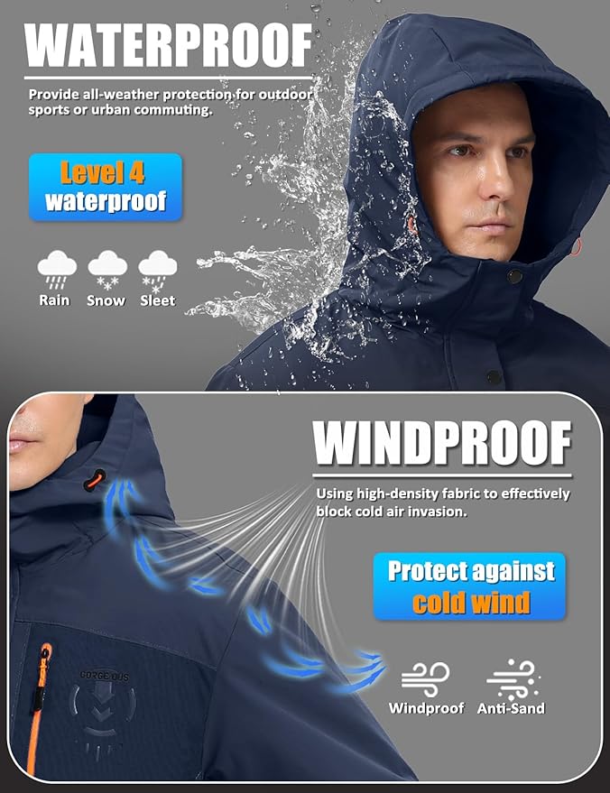 - Waterproof & Windproof:Constructed with high-performance 4-level protective fabric, this men's ski jacket provides superior resistance against wind and water. Whether you're skiing down slopes or navigating daily commutes in rain or snow, it ensures reliable dryness and comfort in harsh outdoor conditions.