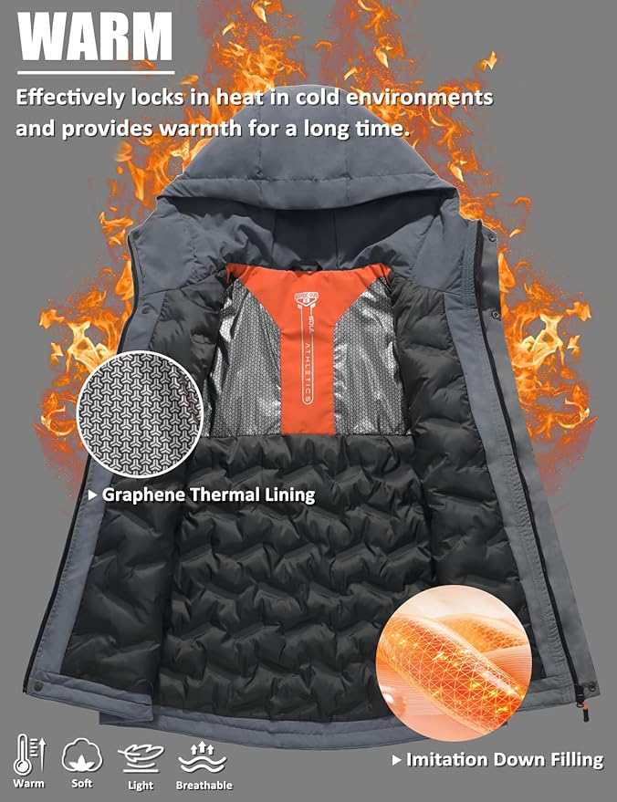 Men's Winter Jacket Waterproof Ski Snow Coat Windproof Snowboard Hooded Raincoats with Warm Graphene lining