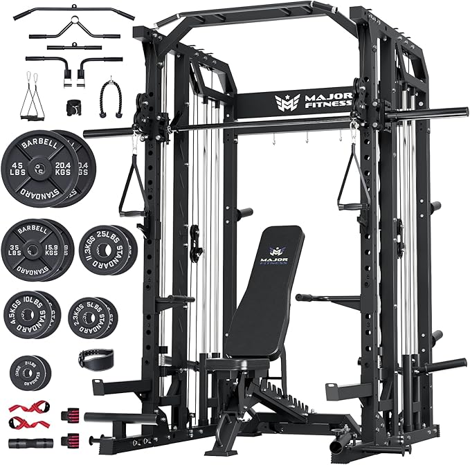 Major Fitness Drone2 Smith△ Machine – All-in-One Home Gym Squat Rack with Weight Bar, Dual LAT Pull-Down Systems & Cable Crossover Machine for Full-Body Workouts
