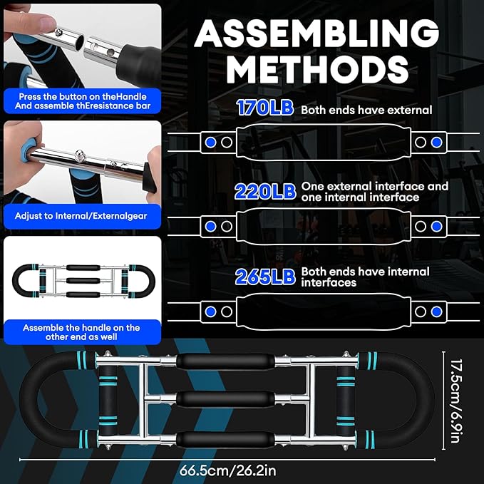 - Adjustable Resistance for Every Level: Easily switch between 170-265lb resistance to match your fitness goals. Perfect for beginners and pros alike with the upgraded quick-adjust knob.