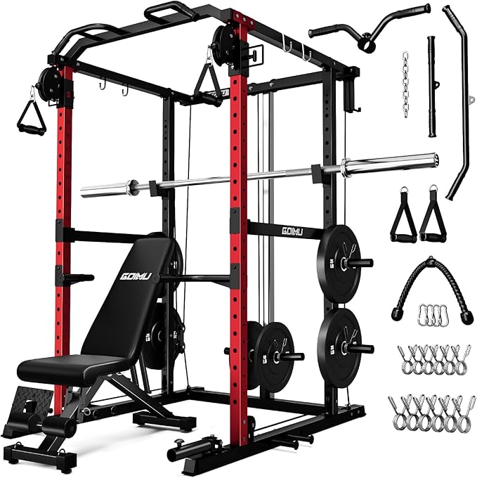 • 【All-in-One Home Gym System】: The GOIMU R1 Power Cage integrates a weight cage, lat pulldown station, chin-up station, dip station, seated row machine, and T-bar row attachment into one compact unit. This multifunctional design enables complete full-body training without moving between equipment. Skip crowded gyms and enjoy professional-level workouts in the comfort of your home with this space-saving solution.