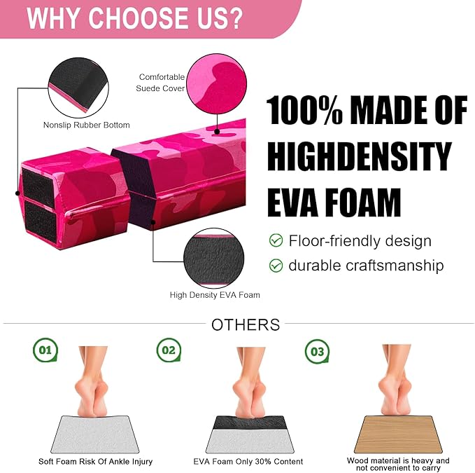 • PRO-GRADE KIDS BALANCE BEAM: Designed with a 4-inch competition-width surface for authentic beam practice. Perfect for handstands, cartwheels, jumps, leaps, and balance drills at home, gyms, parks, or cheerleading sessions.