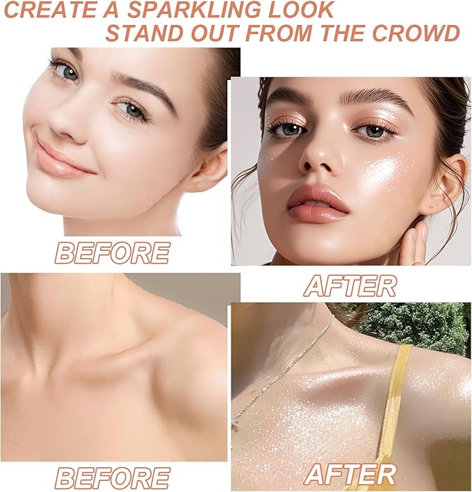 - Highlight Body Glitter Spray: Designed to enhance facial contours, it creates a stunning three-dimensional effect that catches the light beautifully. Add a radiant pop of color to your makeup and shine with effortless glamour!