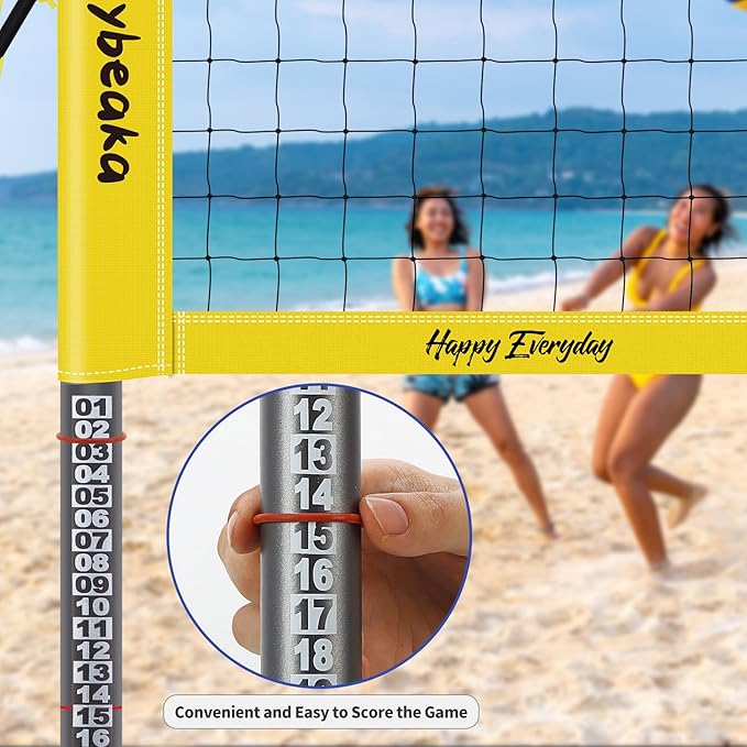 - Heavy-Duty Adjustable Poles ! Featuring 1.2mm thick powder-coated steel poles with superior rust, saltwater, and UV resistance, proven in tests to last 3X longer than standard coatings in harsh conditions. The adjustable design offers 3 adult heights and 1 child height, ideal for family use or competitive play. Built with heavy-duty steel, these poles withstand 50+ mph winds without bending, ensuring rock-solid stability for intense matches.