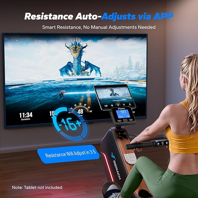 - Stay in the Flow, No Interruptions: Easily adjust 16 resistance levels with a button on the handle—no stopping or bending down. MERACH App support lets your class guide the intensity for you.