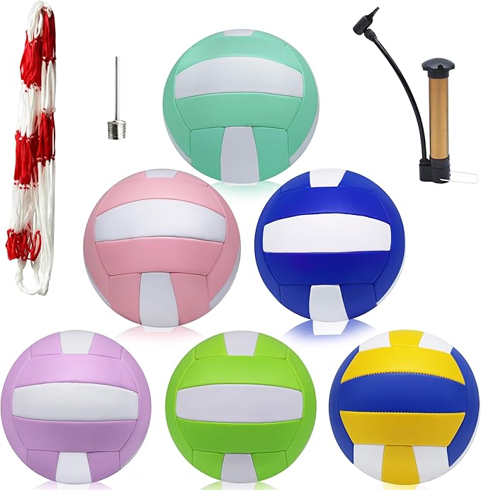 - 【What You Will Get】Includes Six Pack Official Regulation Size 5 Composite Leather volleyballs. 1 pcs Premium Pump with 1pcs metal inflation pins to maintain optimum air pressure. Includes a mesh bag for easy carrying out.
