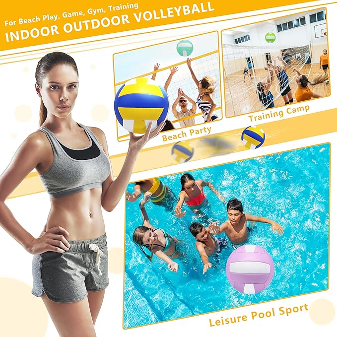 - 【WIDE APPLICATION】Soft touch volleyball, so it is used for volleyball beginners, children. It is also recommended for school physical education. These outdoor volleyballs game balls are perfect for various occasions such as indoor, outdoor, beach, training, playing, Gym, Pool and so on.