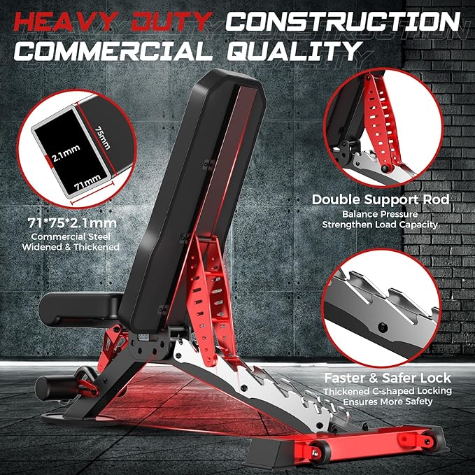 - 【Heavy Duty Commercial Gym Quality】Built to endure the demands of a commercial gym, pooboo workout bench is crafted from commercial-grade square steel, heavy-duty materials and integrated steel structure provide unmatched strength, stability, and longevity, making this adjustable bench a reliable choice for your fitness routine for years to come.