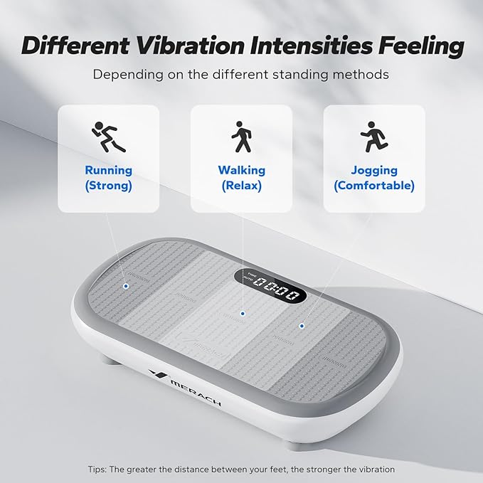 - Intelligent Automatic Speed Change: This vibration plate can automatically detect your standing state: it will automatically start when you stand on it, and it will automatically stop after you leave it for more than 30s, which greatly simplifies the operation steps and improves safety. In addition, it can automatically adjust the vibration speed according to your footstep frequency during exercise, providing a more personalized and efficient exercise experience.