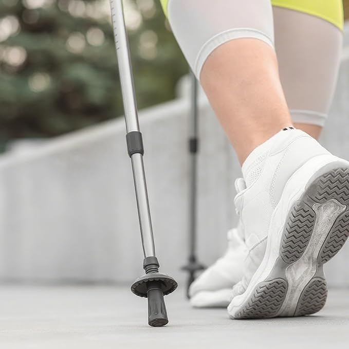 - The concave-convex base of the trekking pole cap provides excellent traction, stability, and shock absorption, reducing joint stress and making hiking more comfortable.