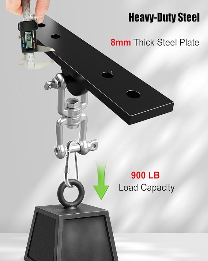 - 900 LB Load Capacity: Constructed from premium high-hardness steel with an 8mm thick base plate, this punching bag hanger supports up to 900 pounds of dynamic weight. Perfect for boxing, Muay Thai, kickboxing, or any high-impact training. Solid build ensures stability even during your most intense sessions