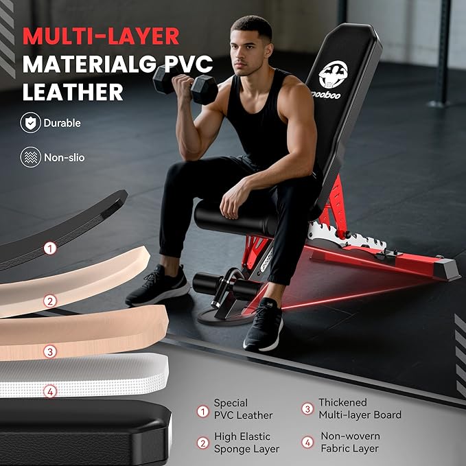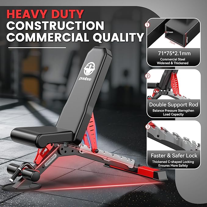 - 1500LB Pro Weight Bench: Engineered with a wobble-free one-piece steel frame, 8+3 swift-adjust settings for any lift, plus dual-defense comfort: 2.5" sweat-proof leather seating & 4" leg-shield foam. Engineered to outlast commercial Workout Benches while delivering elite stability and injury protection for powerlifters.