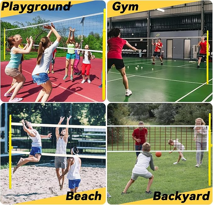 - 【Badminton Net & Volleyball Net】Get your kids moving and playing together! Our portable volleyball net is ideal for adults & little kids causal playing and sports training.Our volleyball poles come with a volleyball net and a badminton net.Suitable for for indoor outdoor sports beach garden schoolyard backyard.