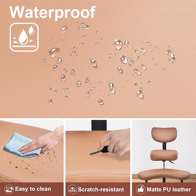 Meditation Chair Cross Legged ADHD Office Chair for Adults with Wheels Ergonomic Back Support and Leg Rest for Multi Position Criss Cross Sitting Kneeling and Yoga Height Adjustable, Leather Style