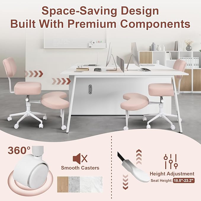 Meditation Chair Cross Legged ADHD Office Chair for Adults with Wheels Ergonomic Back Support and Leg Rest for Multi Position Criss Cross Sitting Kneeling and Yoga Height Adjustable, Leather Style